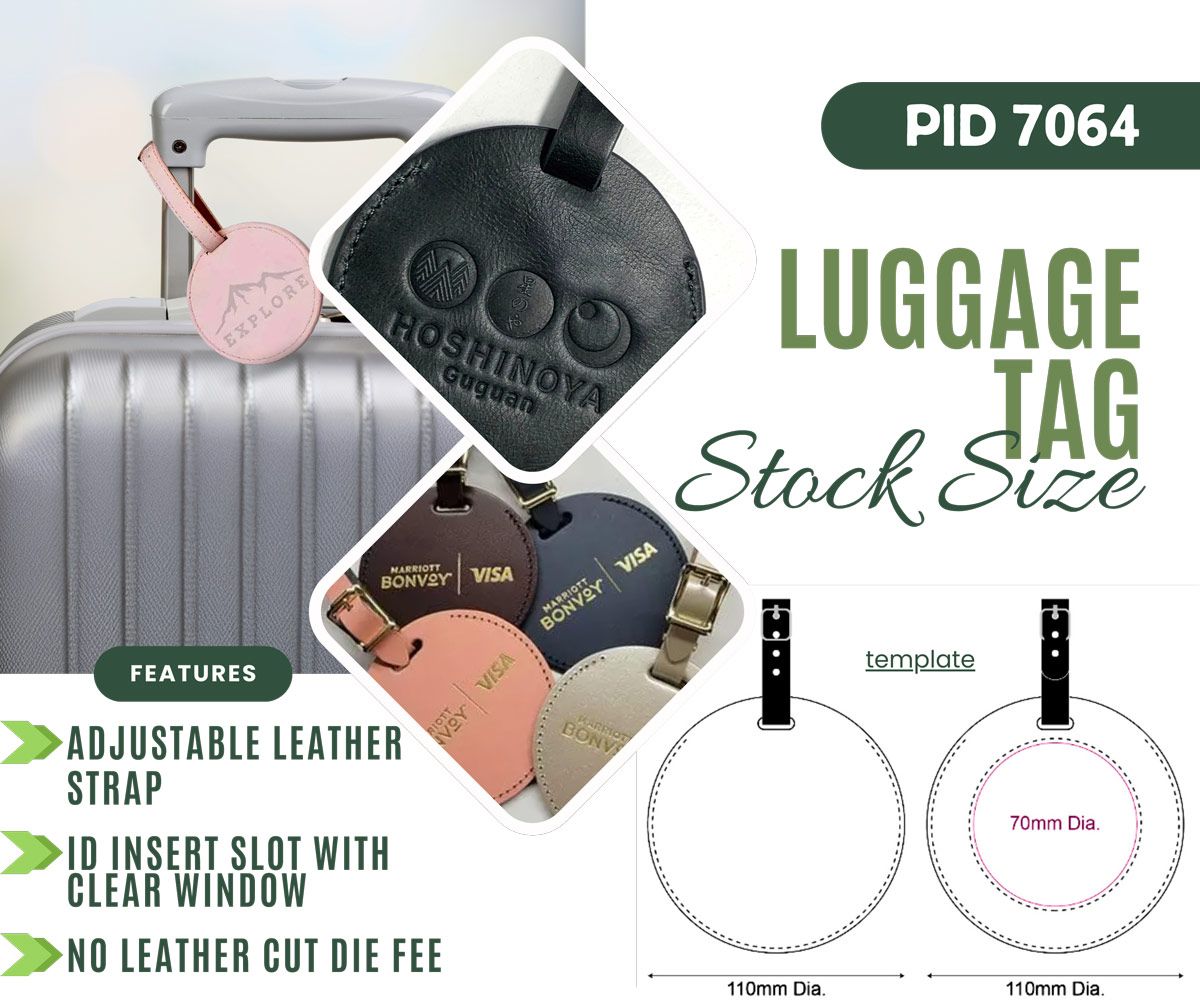 Dette cirkulære læderbagagemærke er en favorit blandt personer, der værdsætter den symbolske betydning af cirklen, som repræsenterer helhed, perfektion og uendelighed, blandt andre betydninger. Et skræddersyet design er særligt velegnet til centerområdet for at forbedre det cirkulære tema. Du kan vælge mellem debossing, trykning eller folieprægningsteknikker for at opnå dit ideelle udseende. Tagget leveres med et justerbart læderrem med en metalspænde samt et klart vindue til en papir-ID indsats.