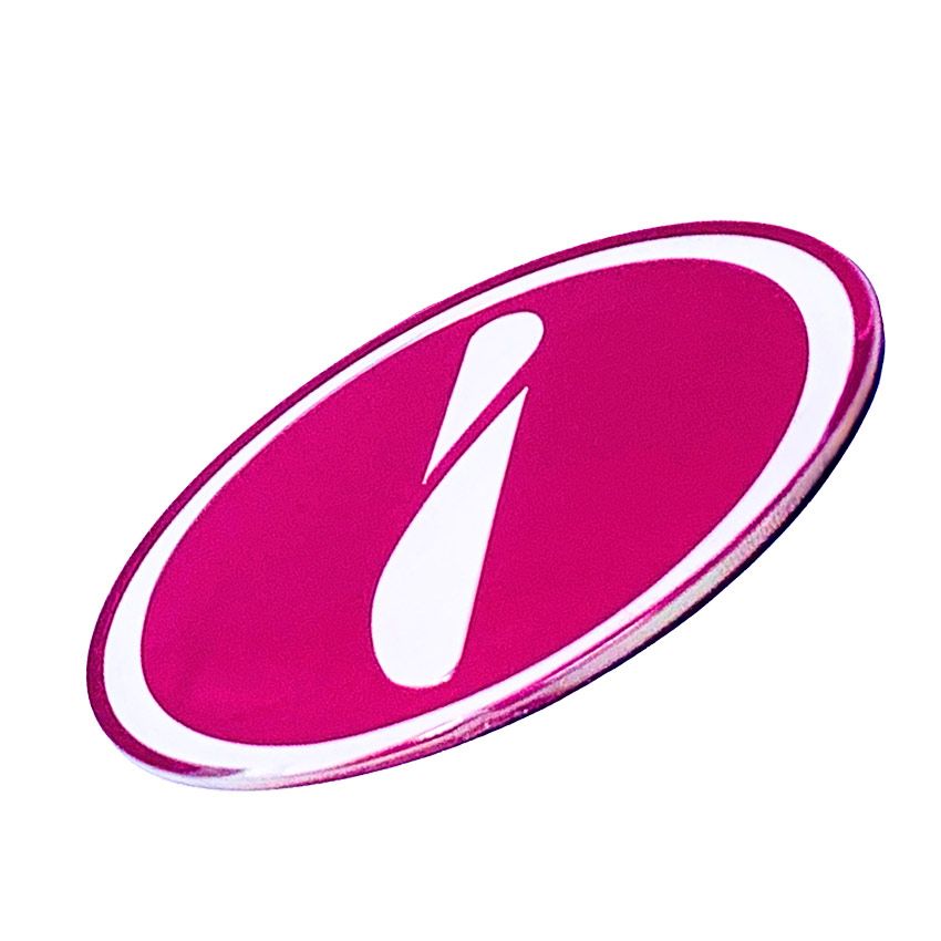 Kunststoffnamensschilder, die für Automobilembleme verwendet werden, bestehen am häufigsten aus ABS. In bestimmten Designs wird jedoch eine Kombination aus ABS und Harz verwendet, wie in diesem Beispiel gezeigt. Das Basemblem wird aus ABS hergestellt und verfügt über ein geprägtes Logo, das verchromt ist, wobei der Hintergrund in Pink gedruckt ist, um den visuellen Kontrast zu erhöhen. Eine klare Harzkuppe wird dann über die Oberfläche aufgetragen, um Tiefe, Glanz und zusätzlichen Schutz zu schaffen.