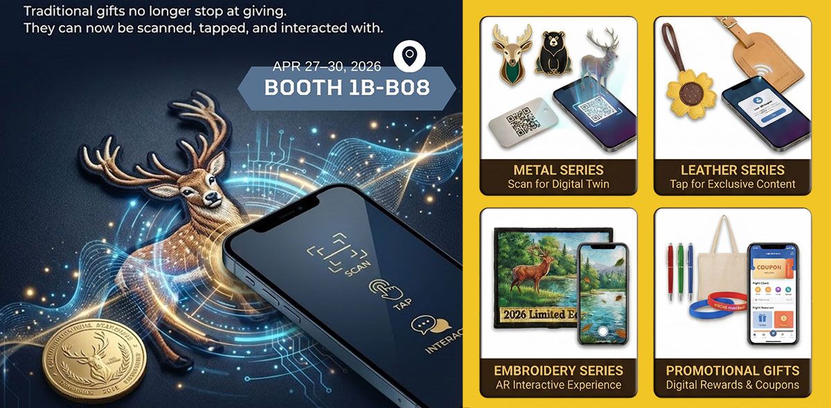 Visit Jin Sheu at the Hong Kong Gift Show 2026 and experience how Multi-Site Manufacturing Reliability × Next-Generation Smart Pins are redefining customized gifts. As a trusted manufacturer, we specialize in custom metal badges, keychains, medals, commemorative coins, embroidery, and personalized leather gifts—now enhanced with smart NFC pin solutions. Combining traditional metal craftsmanship with intelligent technology, we help global buyers create interactive, brand-driven gift and premium products. Meet Jin Sheu at the HKTDC Hong Kong Gifts & Premium Fair and discover how we connect physical gifts with digital experiences to elevate brand value.