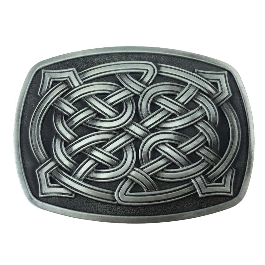 Celtic knot pattern belt buckle in antique tin | high-quality custom promotional items for giveaways