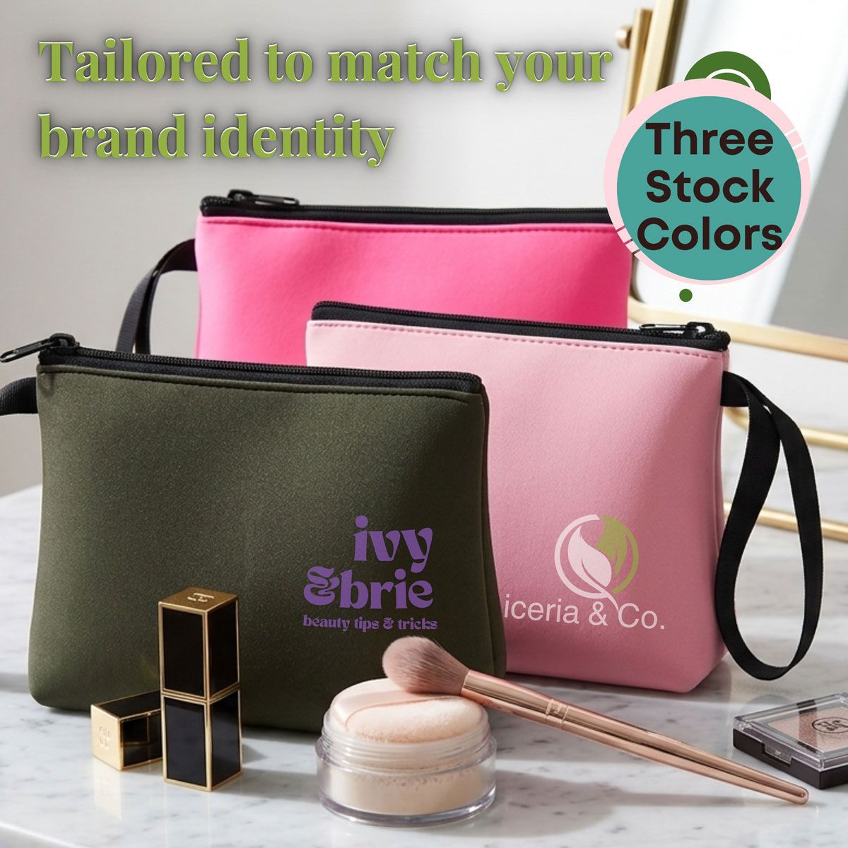 Branded Neoprene Cosmetic Bags: Stylish, Upright, Stock Colors Available