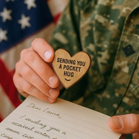 Sending you a pocket hug wood token for deployed soldiers thoughtful gift from family or loved ones