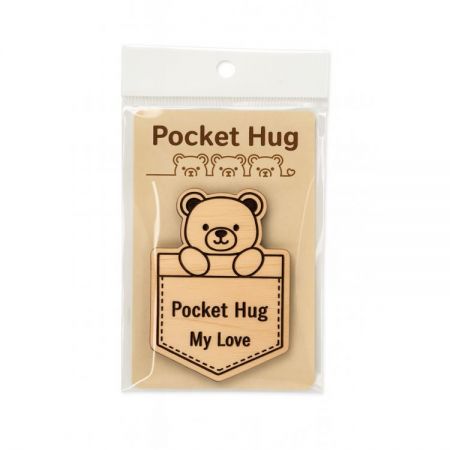 bear shaped wooden pocket hug my love token in OPP bag with kraft card backing for gift giving
