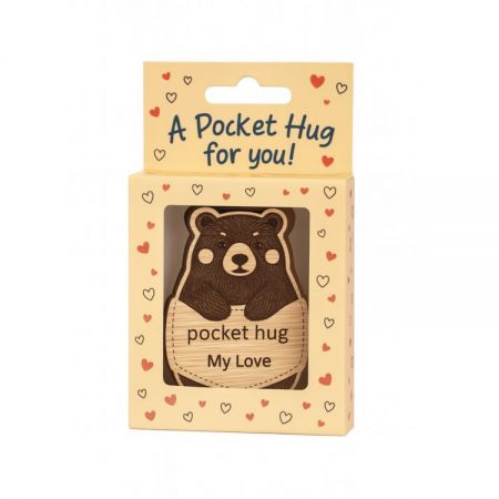black bear pocket hug my love token in printed paper box with window for kids or farewell gift