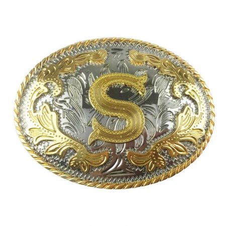 Monogrammi Lännen vyönsolki kultaisella S:llä kaksivärisellä taustalla