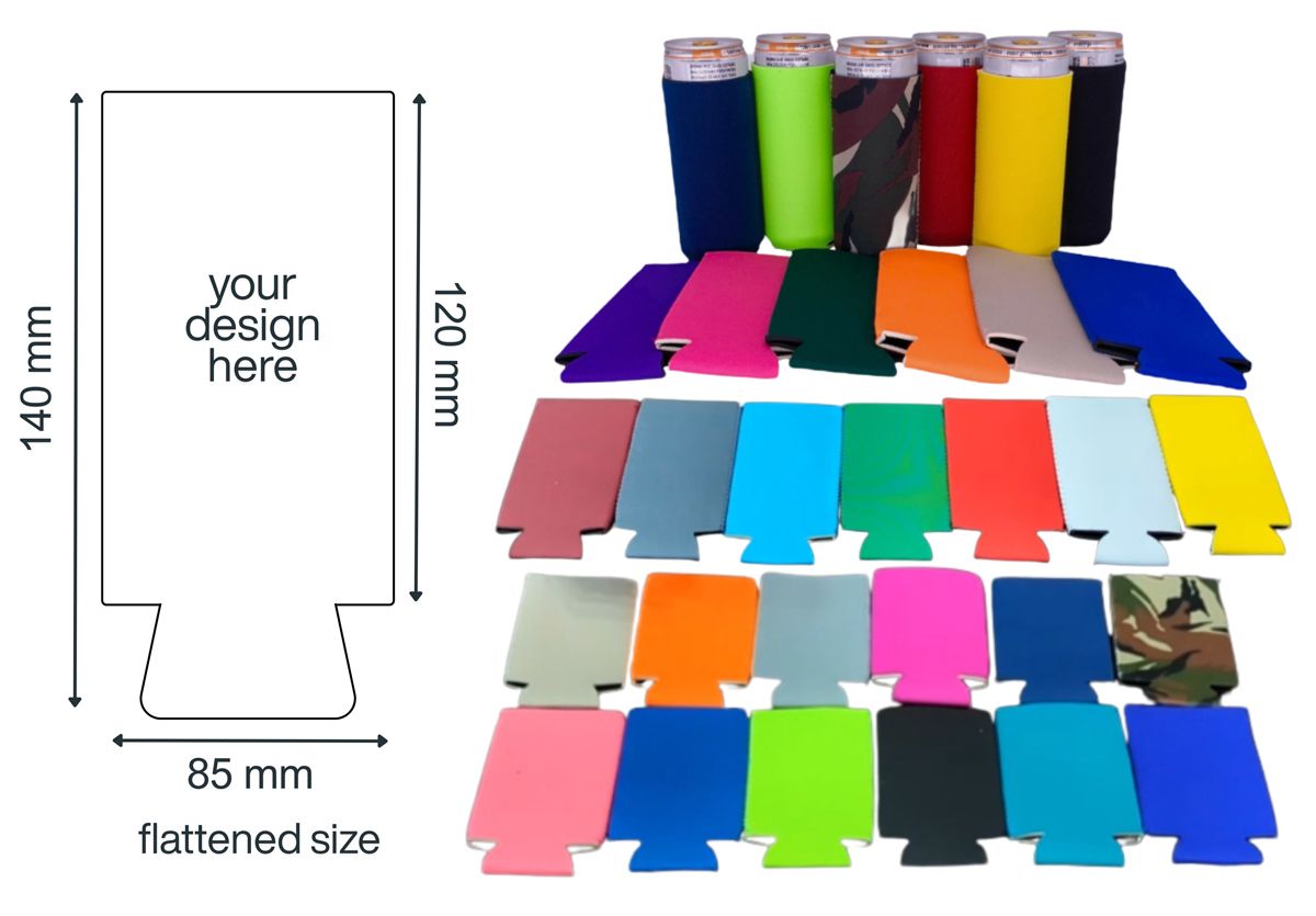 Koozies personalizzati per lattine slim | Articoli Promozionali in Metallo e Silicone Personalizzati | Portachiavi, Spille e Medaglie Personalizzate