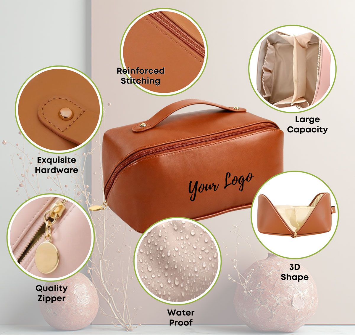 レザーコスメティックバニティケース | 企業ブランディングのための高品質なカスタムプロモーショナル商品 | Jin Sheu