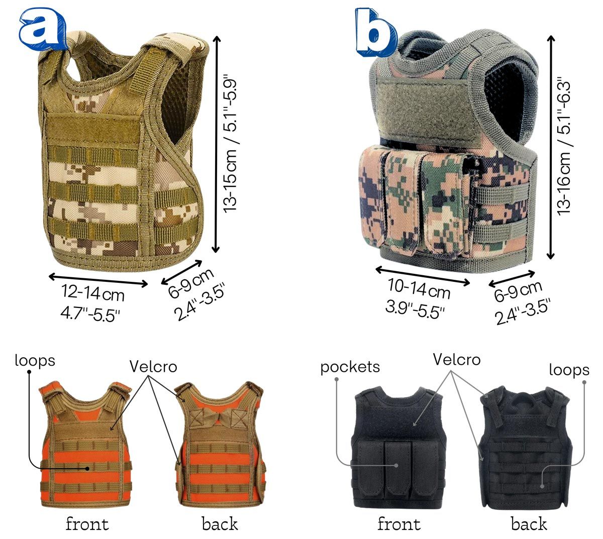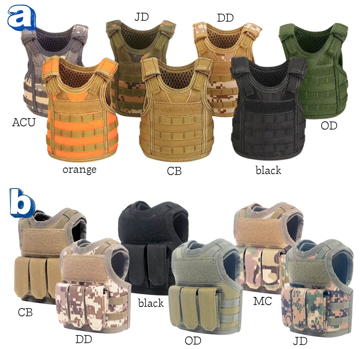 Mostre seu estilo robusto enquanto mantém sua bebida gelada com nossos Koozies de Lata Mini Coletes Táticos! Disponível em dois designs táticos (a e b) e uma ampla gama de cores—incluindo preto, verde OD, marrom coyote (CB), deserto digital (DD), digital da selva (JD), ACU, laranja e multicam (MC)—estes coletes mini são feitos de material de nylon durável com detalhes em webbing MOLLE e alças de ombro ajustáveis para um visual tático autêntico. Perfeito para entusiastas militares, aventureiros ao ar livre ou como brindes promocionais únicos, esses koozies adicionam um toque divertido e tático a qualquer bebida.