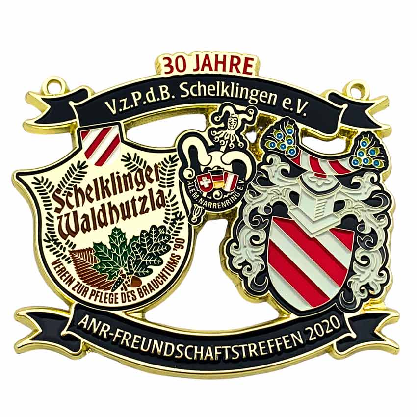 Celebre 30 anos de rica tradição com esta medalha de carnaval em liga de zinco fundido de alta qualidade, criada para V.z.P.d.B. Schelklingen e.V. em homenagem ao ANR-Freundschaftstreffen 2020. Esta medalha é feita de liga de zinco fundido, uma escolha perfeita para designs complexos com múltiplos recortes irregulares, como os detalhados rolos de faixa e emblemas interligados. A frente, os lados e a parte de trás são todos polidos com maestria para um acabamento refinado e profissional. É banhado a ouro para lhe conferir um brilho elegante e um senso de prestígio, tornando-o ideal para eventos comemorativos. Jin Sheu é um fabricante personalizado de Medalha Comemorativa de Carnaval., Medalhas personalizadas em fundição. de Taiwan desde 1984.Descubra uma ampla gama de produtos promocionais personalizados na Jin Sheu.De produtos metálicos a presentes personalizados, oferecemos soluções sob medida para branding corporativo e eventos.