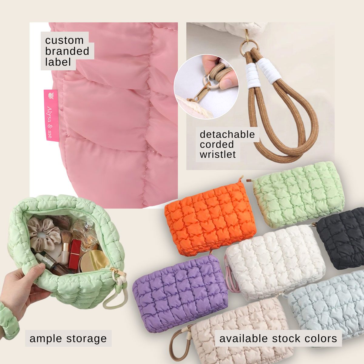 Стильная косметичка с стеганым наполнителем и функциональными вариантами брендинга