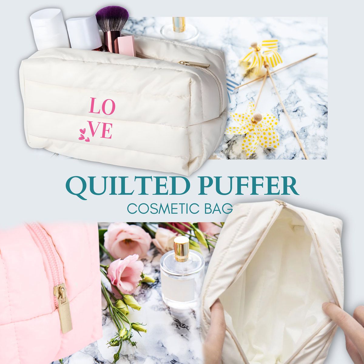 Этот пухлый косметический мешок разработан для повседневной прочности и воздействия бренда. Стеганая подкладка обеспечивает защиту косметики во время поездок, в то время как широкий молния позволяет легко получать доступ и видеть содержимое. Его легкая, но прочная конструкция делает его идеальным для использования в пути, а гладкая поверхность хорошо подходит для печати логотипов на заказ, что делает его отличным вариантом для брендов красоты с частными марками, корпоративных подарков и рекламных кампаний.