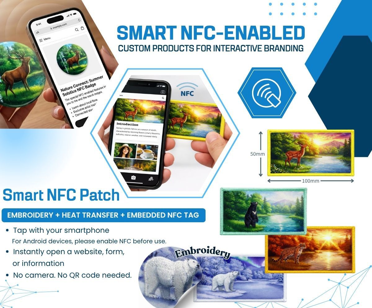 แพทช์ NFC ที่กำหนดเองเปลี่ยนแบรนด์ที่ปักเป็นจุดสัมผัสดิจิทัลอัจฉริยะ ผลิตจากการปัก การพิมพ์ด้วยความร้อน และแท็ก NFC ที่ฝังอยู่ แพทช์แต่ละชิ้นช่วยให้ผู้ใช้แตะด้วยสมาร์ทโฟนเพื่อเปิดเว็บไซต์ แบบฟอร์ม แคตตาล็อก หรือข้อมูลผลิตภัณฑ์—ไม่ต้องใช้กล้องหรือรหัส QR เหมาะสำหรับแบรนด์กลางแจ้ง งานอีเวนต์ เครื่องแบบ ของที่ระลึก และของขวัญส่งเสริมการขาย แพทช์ NFC ที่กำหนดเองรวมการฝีมือผ้าเนื้อดีเข้ากับการตลาดแบบแตะเพื่อเชื่อมต่อสมัยใหม่.