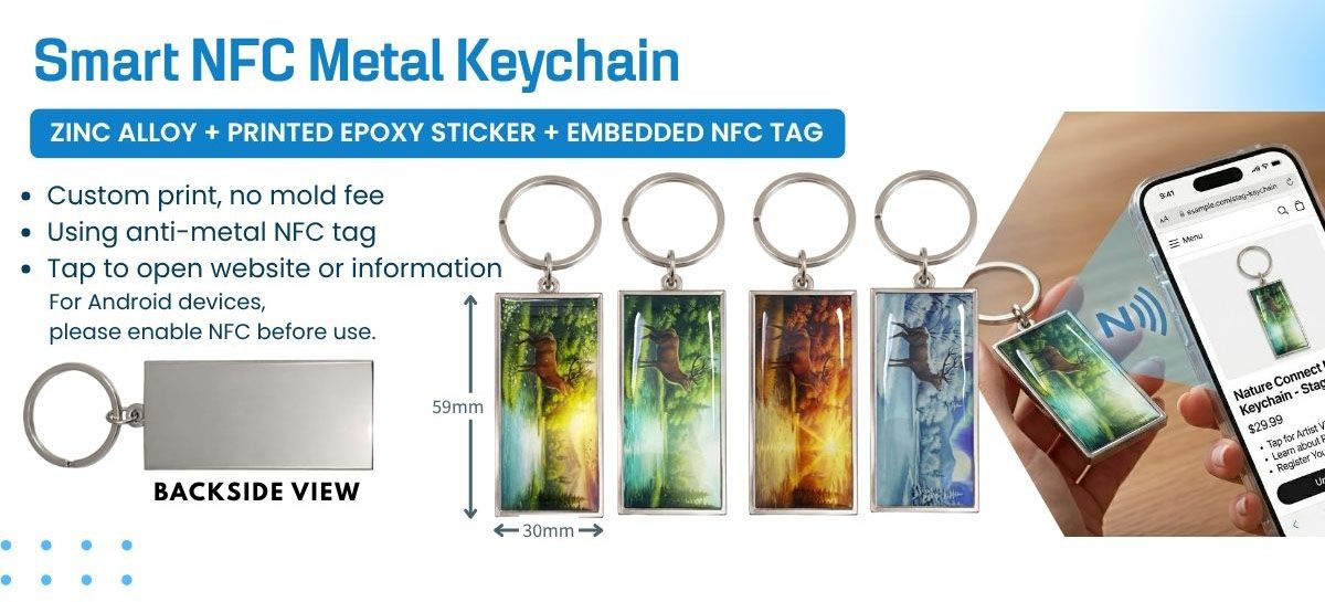 พวงกุญแจ NFC แบบกำหนดเองประกอบด้วยโลหะผสมสังกะสีที่ทนทาน สติ๊กเกอร์อีพ็อกซี่ที่พิมพ์ และแท็ก NFC ป้องกันโลหะที่ฝังอยู่ เพื่อสร้างของขวัญส่งเสริมการขายที่ใช้งานได้จริงและมีปฏิสัมพันธ์. พวงกุญแจ NFC แบบกำหนดเองนี้ใช้แม่พิมพ์พวงกุญแจโลหะที่ทำสำเร็จแล้ว ดังนั้นจึงไม่มีค่าธรรมเนียมแม่พิมพ์ ทำให้เป็นตัวเลือกที่คุ้มค่าสำหรับโครงการที่กำหนดเอง. ผู้ใช้เพียงแค่แตะด้วยสมาร์ทโฟนเพื่อเปิดเว็บไซต์ หน้าผลิตภัณฑ์ ข้อมูลกิจกรรม หรือแบบฟอร์มดิจิทัล—เหมาะสำหรับการสร้างแบรนด์ การท่องเที่ยว การค้าปลีก และการแจกของรางวัล.