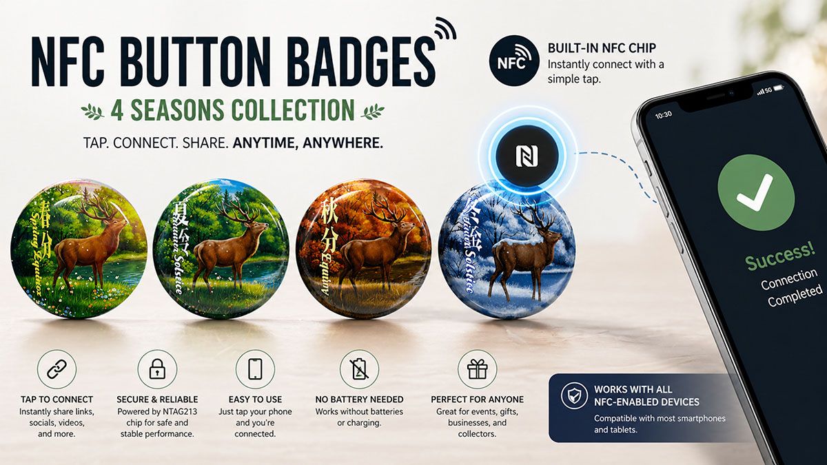 ปุ่ม NFC นี้ทำด้วยแผ่นเหล็กเคลือบดีบุกและชิป NFC ในตัว ผสมผสานโครงสร้างน้ำหนักเบาเข้ากับการใช้งานประจำวันที่เชื่อถือได้ รูปแบบทรงกลม 58 มม. มีพื้นที่เพียงพอสำหรับงานศิลปะสีเต็มรูปแบบ ในขณะที่ยังคงรูปลักษณ์ที่สะอาดตาและสวมใส่ได้ สำหรับแบรนด์ที่ต้องการทั้งรูปลักษณ์ภายนอกและความทนทานในการใช้งาน การผสมผสานวัสดุนี้ทำให้เกิดความสมดุลในทางปฏิบัติระหว่างการนำเสนอและประสิทธิภาพ