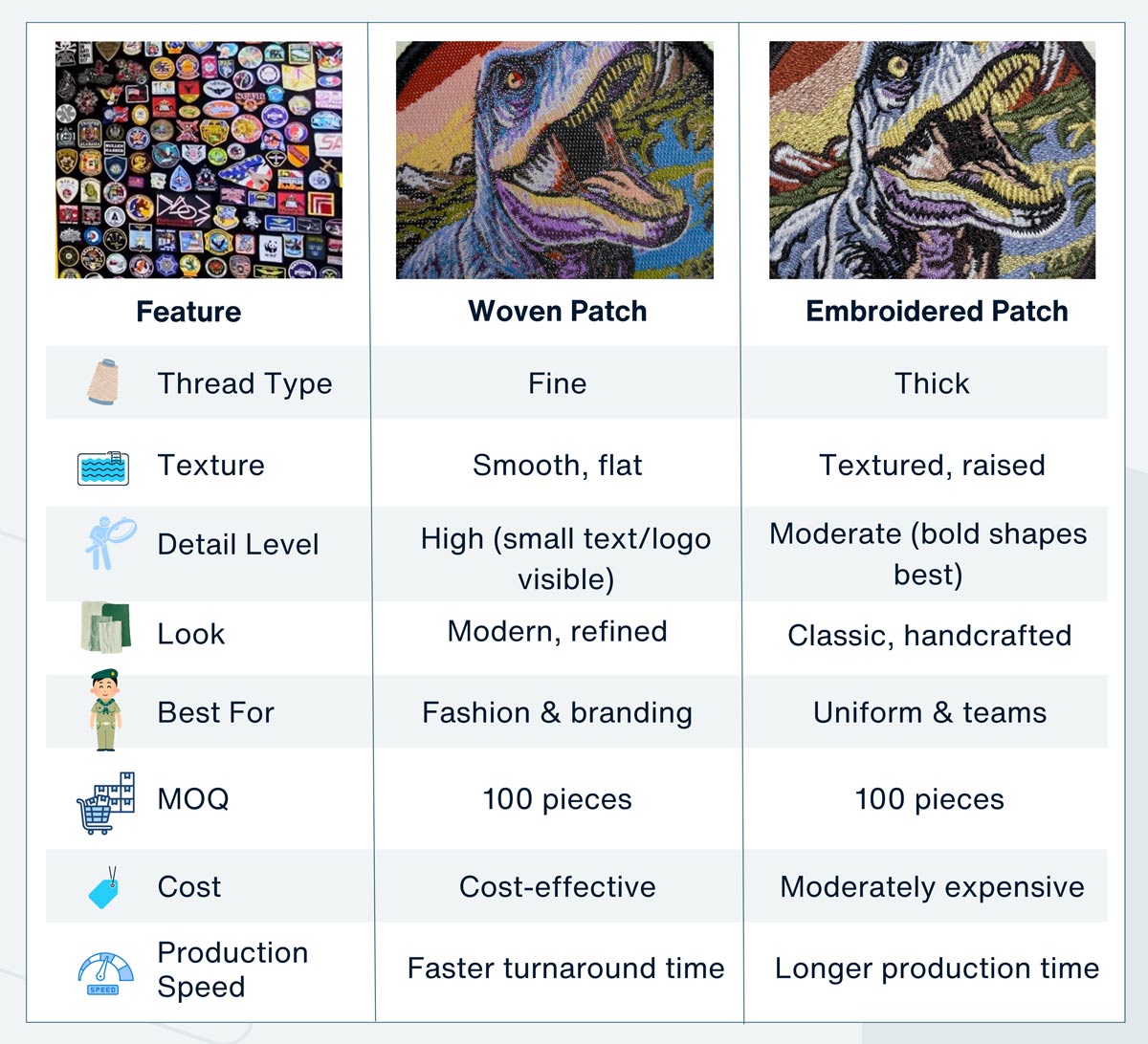 Patches dệt so với patches thêu: Loại nào phù hợp với thương hiệu của bạn?