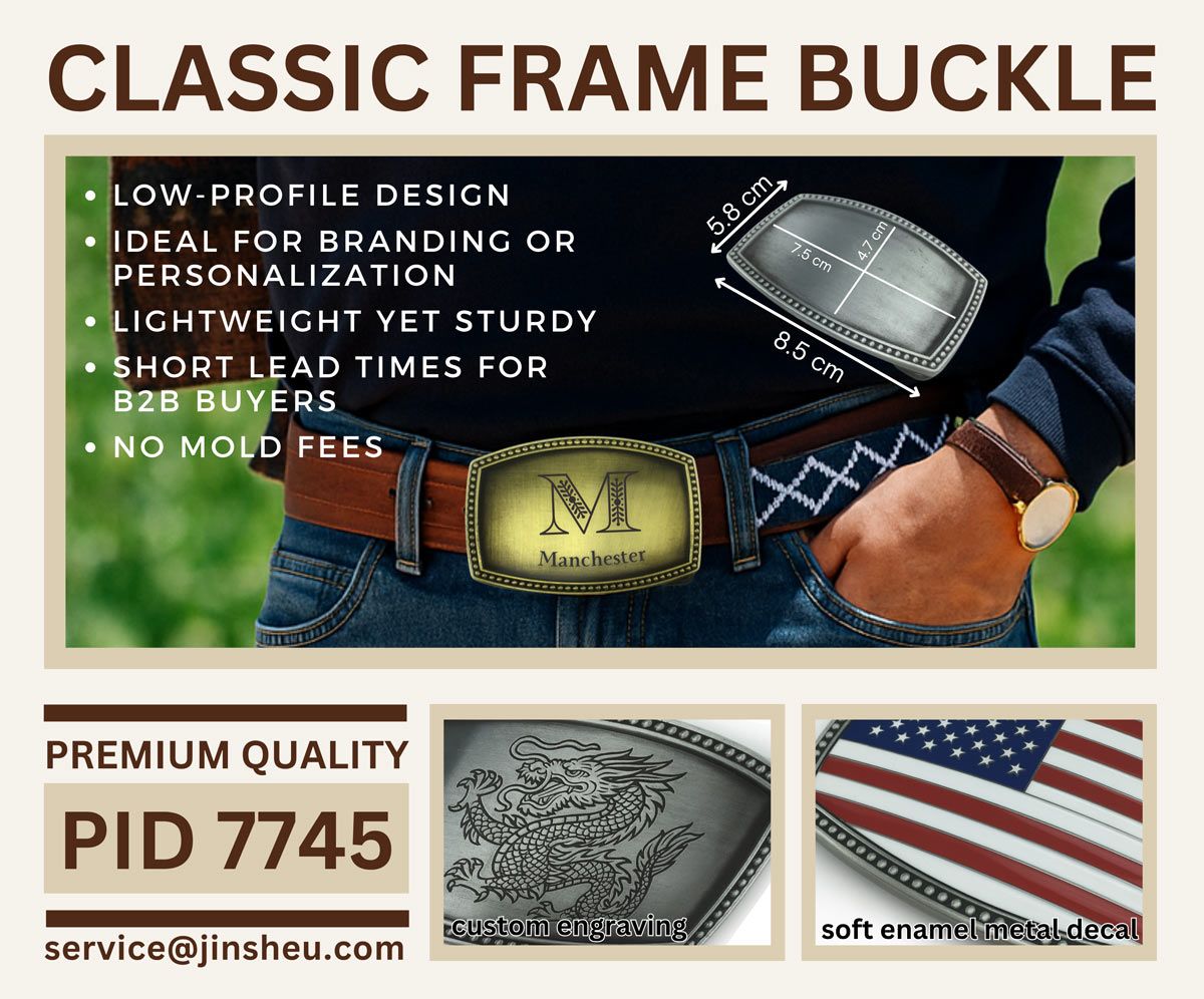 1) Thiết kế thấp – Phong cách đa dụng phù hợp với nhiều ngành công nghiệp và ứng dụng khác nhau. 2) Hoàn hảo cho việc xây dựng thương hiệu – Một bề mặt sạch sẽ, lõm lý tưởng cho việc khắc tùy chỉnh, điền men, hoặc gắn bảng logo. 3) Bền nhưng nhẹ – Được làm từ hợp kim kẽm chắc chắn để có hiệu suất lâu dài mà không làm tăng thêm trọng lượng. 4) Sản xuất linh hoạt – Thời gian giao hàng ngắn và các tùy chọn tùy chỉnh được thiết kế cho người mua B2B. 5) Sẵn sàng để sử dụng – Có thể sử dụng ngay mà không cần tùy chỉnh. 6) Tiết kiệm chi phí – Không có phí khuôn khi sử dụng ở dạng hiện tại. Sẵn sàng tùy chỉnh dự án thắt lưng tiếp theo của bạn? Hãy để chúng tôi giúp biến tầm nhìn của bạn thành hiện thực với tay nghề chất lượng cao và các giải pháp cá nhân hóa được thiết kế để đáp ứng nhu cầu của bạn.